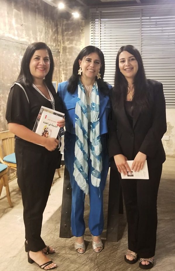 الشاعرة ميراي شحاده بين مقدمة الندوة روان صالحة والكاتبة والشاعرة ميشلين مبارك