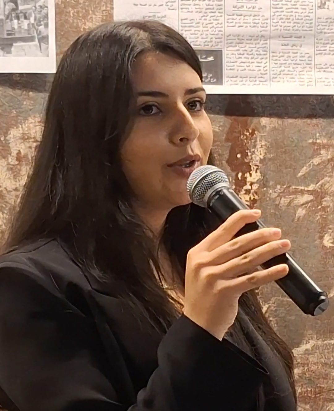 فَلْتَتَفَضَّلْ إِلَى الْمِنْبَرِ الْمُهَنْدِسَة مِيرَاي شحَادَة، حَامِلَة الشُّعْلَة وَرَاعِيَة الْمَعْنَى.