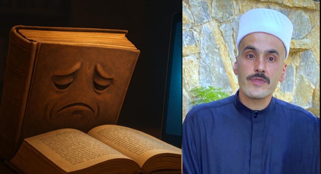 أما صاحب الغرفة، فرفع رأسه من الشاشة للحظةٍ قصيرة. نظر إلى الرف… نظر إلى الغلاف الباهت… مدّ يده، وأخرج الكتاب من عزلته.