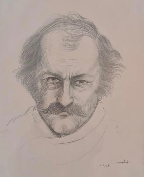 لوحة ذاتية- أوتوپورتريه (autoportrait) للفنان محمد علي الخطيب. لوحة رصاصية. (1978).