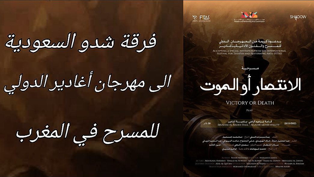بدعم من هيئة المسرح والفنون الأدائية وبدعوة كريمة من المهرجان الدولي للمسرح وفنون الخشبة بمدينة أغادير في المملكة المغربية في الفترة من 24 -28 اكتوبر 2025 وتشارك فرقة شدو بمسرحية [الانتصار أو الموت] بين العروض المسرحية الدولية المقدمة من المغرب والامارات وبلجيكا وفرنسا وإسبانيا وسويسرا والسنغال وألمانيا وألبانيا.