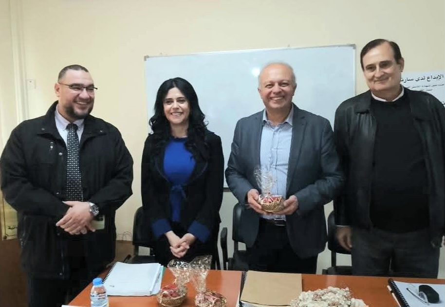 الشاعرة ميراي شحاده مع لجنة مناقشة الماجستير في كلية الآداب