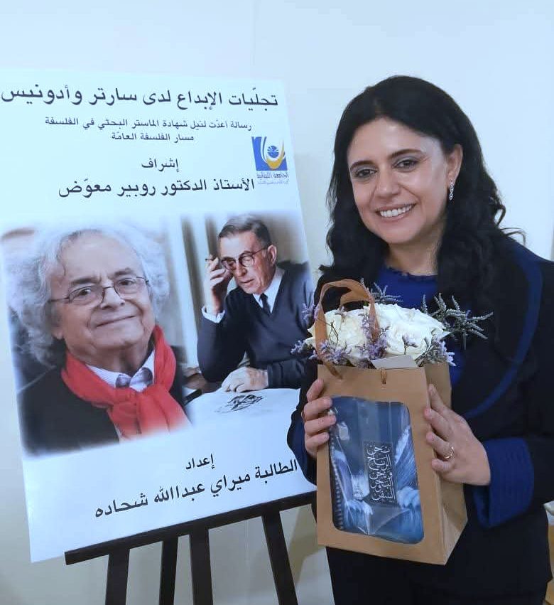 هذا ما لمسته خلال متابعة مناقشة أطروحة الماجستير للشاعرة والمهندسة ميراي شحاده في كلية الآداب والعلوم الإنسانية في الجامعة اللبنانية، بعنوان: «تجلّيات الإبداع عند سارتر وأدونيس».