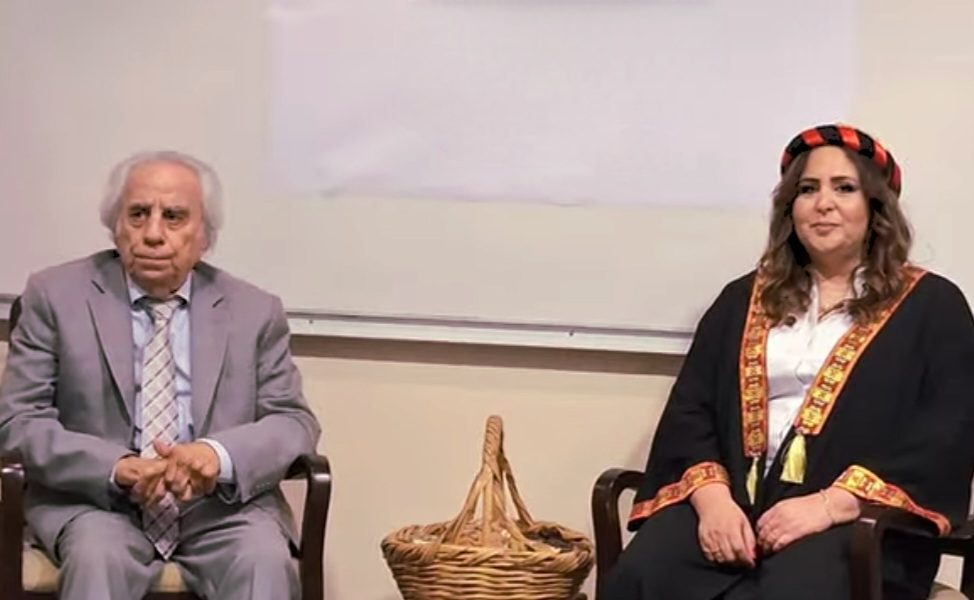 كارولين زعرب طايع والشاعر هنري زغيب خلال قراءة ل ” كاره وكواره ” ( تصوير يوسف رقة )