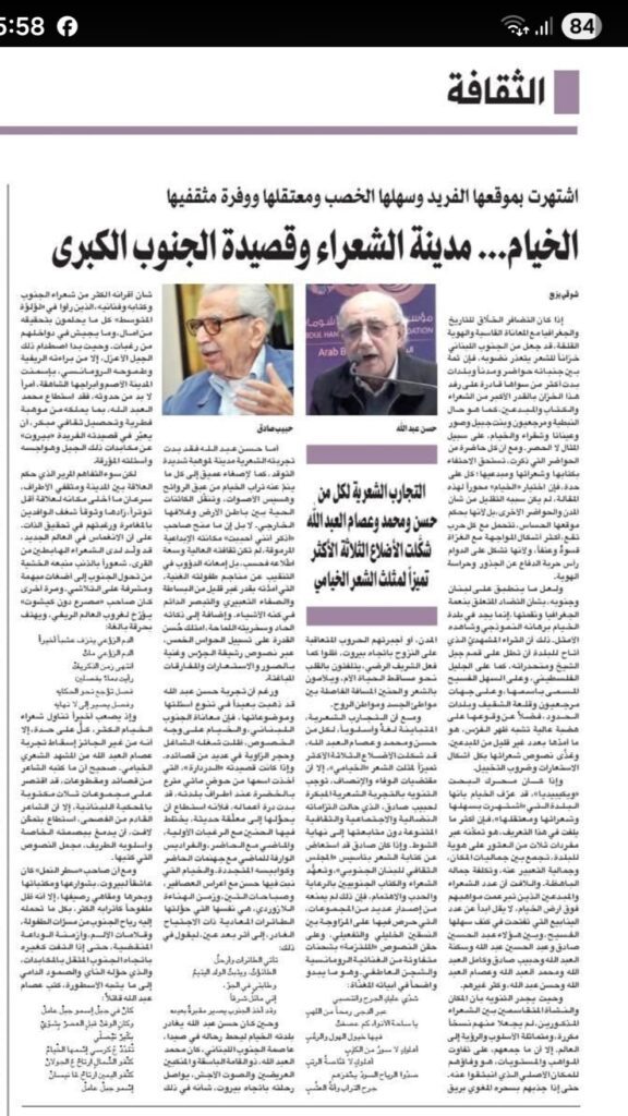 شوقي بزيع ل ” الشرق الأوسط ” : ” الخيام ” مدينة الشعراء في جنوب لبنان 2026/04/22
